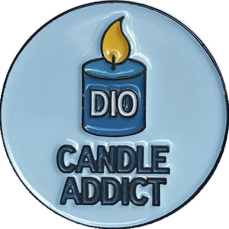 This 1 inch round soft enamel pin made exclusively for Dio Candle Company displays an Adorable Candle ® with appropriate "CANDLE ADDICT" text below. Quality made, collector-style pin arrives mounted on premium quality stock card with pictured print, wrapped in gift tissue paper, inside a plastic protective pillow box.